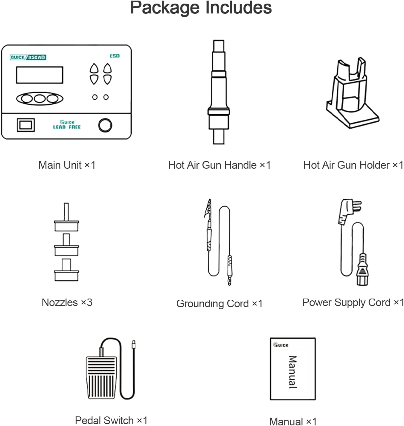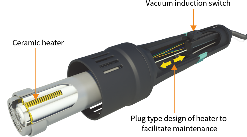 - Sensor de bucle cerrado; temperatura controlada por microordenador con disparo cero, gran potencia, calentamiento rápido; la temperatura se ajusta fácilmente y con precisión, sin verse afectada por el flujo de aire.