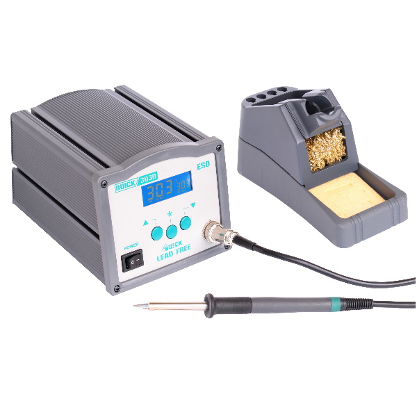 Estación de soldadura ESD con una potencia de calentamiento de 120 W. Diseñada para la soldadura profesional de componentes electrónicos utilizando aleaciones sin plomo.